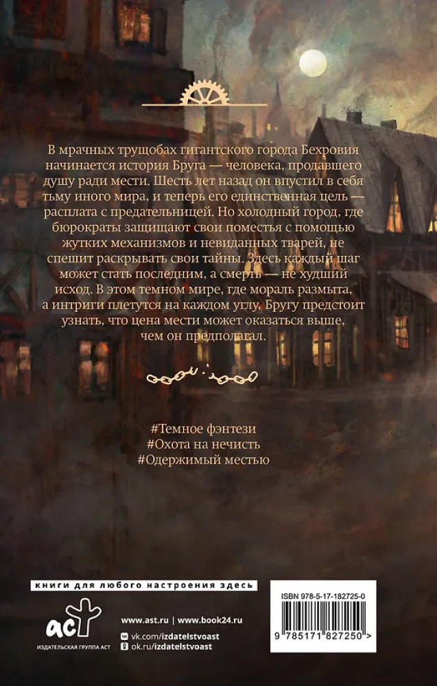💳 Оплатить за товар можно при получении 🇰🇿 Есть бесплатная доставка по Казахстану от 1 дня 🎁 Копите бонусы с каждой покупки Серия: Nova Fiction. Русская городская фэнтези В мрачных трущобах гигантского города Бехровия начинается история Бруга — человека, продавшего душу ради мести. Шесть лет назад он впустил в себя тьму иного мира, и теперь его единственная цель — расплата с предательницей. Но холодный город, где бюрократы защищают свои поместья с помощью жутких механизмов и невиданных тварей, не спешит раскрывать свои тайны. Здесь каждый шаг может стать последним, а смерть — не худший исход. В этом темном мире, где мораль размыта, а интриги плетутся на каждом углу, Бругу предстоит узнать, что цена мести может оказаться выше, чем он предполагал. |