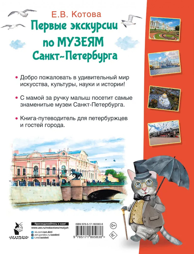 💳 Оплатить за товар можно при получении 🇰🇿 Есть бесплатная доставка по Казахстану от 1 дня 🎁 Копите бонусы с каждой покупки Серия: С мамой за ручку: первые открытия Из книги «Первые экскурсии по музеям Санкт-Петербурга» дети и взрослые узнают много интересного о самых известных музеях Санкт-Петербурга: когда, как и почему они были основаны, как до них добраться, что в них можно увидеть, в каких детских мастер-классах принять участие. Книга даст возможность маленькому читателю почувствовать уникальную атмосферу петербургских музеев и будет полезна не только жителям города и туристам, но и всем, кто интересуется историей, наукой и искусством. |