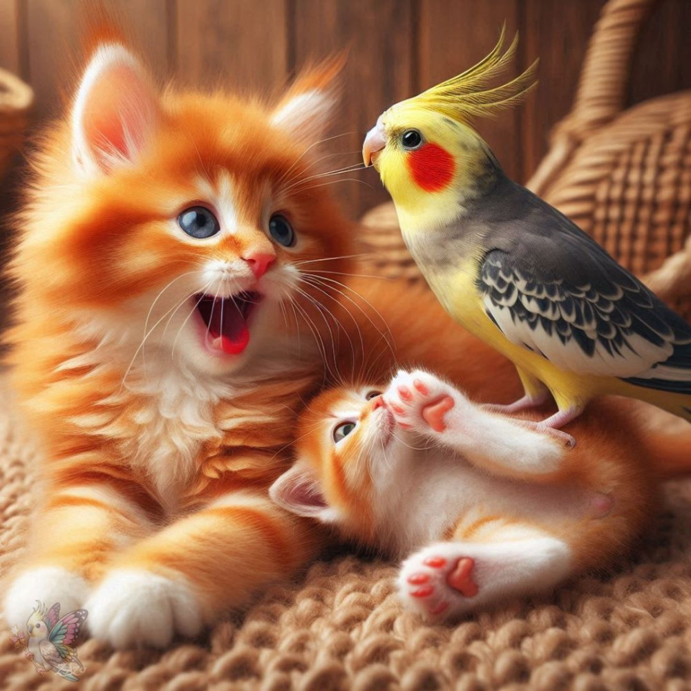 DIAMOND Алмазная мозаика «Котята и попугай»+35