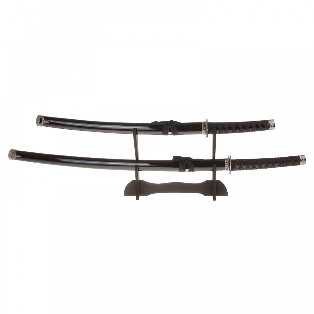 Катаны сувенирные 2 в 1 на подставке, дерево, черные ножны-25% +788