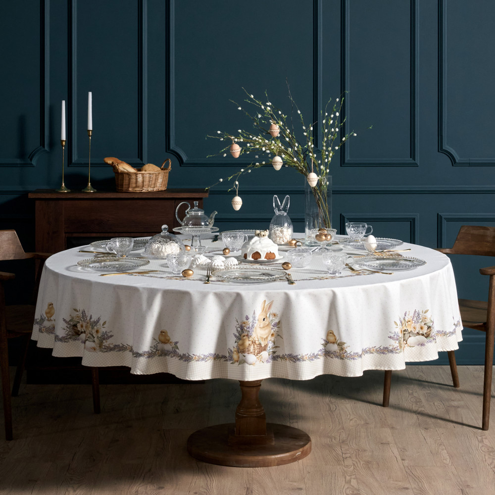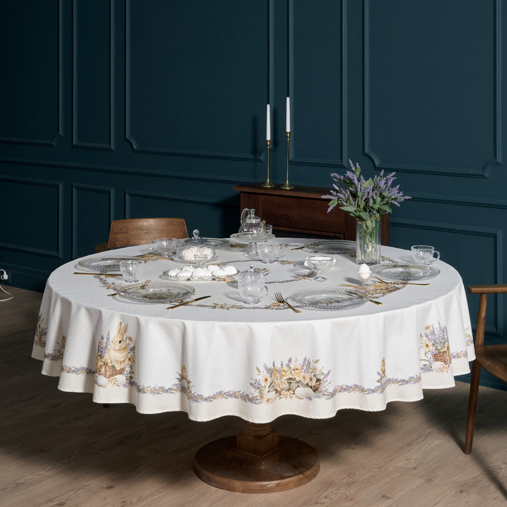 Принт с милыми кроликами, нежными оттенками и природными мотивами делает изделие выразительным элементом декора, благодаря которому стол становится центром внимания. Он создаёт атмосферу уюта и гармонии на кухне, даче или в гостиной. Стильная скатерть легко сочетается с посудой и аксессуарами из этой же серии, позволяя оформить сервировку в едином стиле. Может стать отличным подарком на Пасху для мамы, бабушки, подруги или близкого человека, который ценит уют и красивый домашний текстиль.