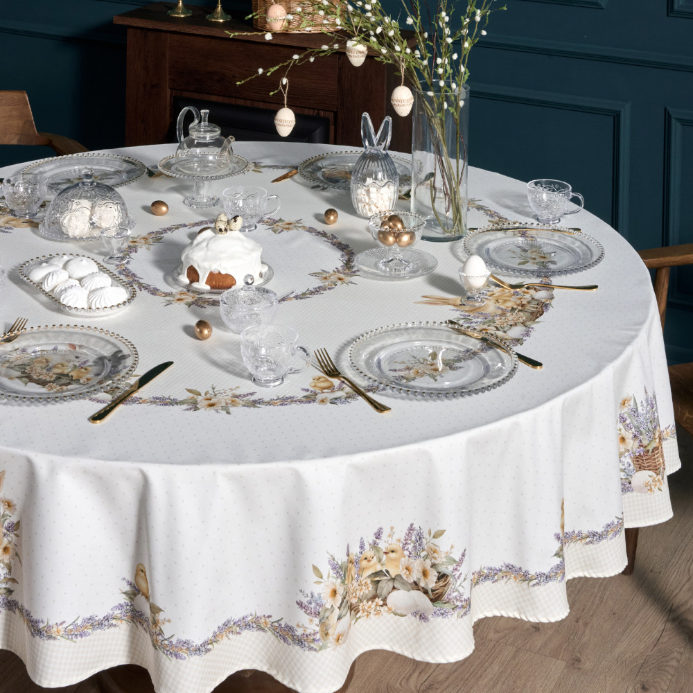 Скатерть на стол тканевая пасхальная коллекция Лавандовая весна от ТМ Lefard наполняет дом атмосферой весеннего уюта и праздника, создавая тёплое и гармоничное настроение в сервировке стола. Изделие выполнено из 100% хлопка, плотностью 190 г/м² с водоотталкивающей пропиткой, которая эффективно защищает поверхность стола от влаги и пятен, легко очищается и сохраняет аккуратный внешний вид. Скатерть подходит как для праздничной сервировки, так и для повседневного использования, дополняя интерьер кухни или столовой. Размер оптимально подходит для обеденных столов, обеспечивая ровный и аккуратный свес. Хлопковая ткань устойчива к износу, не выцветает и сохраняет яркость рисунка даже после многократных стирок при соблюдении рекомендаций по уходу.
