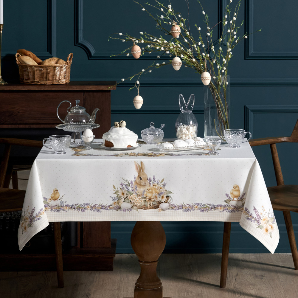 Скатерть на стол тканевая пасхальная коллекция Лавандовая весна от ТМ Lefard наполняет дом атмосферой весеннего уюта и праздника, создавая тёплое и гармоничное настроение в сервировке стола. Изделие выполнено из 100% хлопка, плотностью 190 г/м² с водоотталкивающей пропиткой, которая эффективно защищает поверхность стола от влаги и пятен, легко очищается и сохраняет аккуратный внешний вид. Скатерть подходит как для праздничной сервировки, так и для повседневного использования, дополняя интерьер кухни или столовой. Размер оптимально подходит для обеденных столов, обеспечивая ровный и аккуратный свес. Хлопковая ткань устойчива к износу, не выцветает и сохраняет яркость рисунка даже после многократных стирок при соблюдении рекомендаций по уходу.