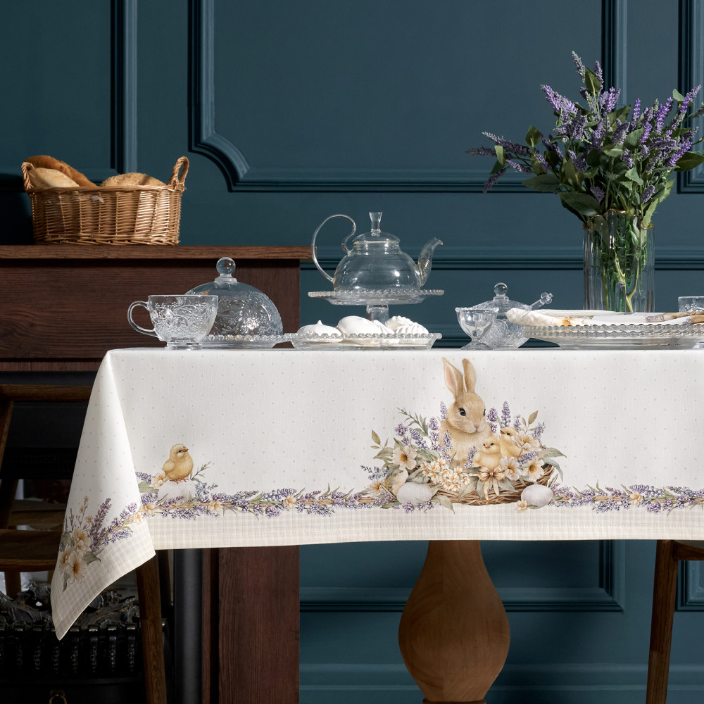 Принт с милыми кроликами, нежными оттенками и природными мотивами делает изделие выразительным элементом декора, благодаря которому стол становится центром внимания. Он создаёт атмосферу уюта и гармонии на кухне, даче или в гостиной. Стильная скатерть легко сочетается с посудой и аксессуарами из этой же серии, позволяя оформить сервировку в едином стиле. Может стать отличным подарком на Пасху для мамы, бабушки, подруги или близкого человека, который ценит уют и красивый домашний текстиль.
