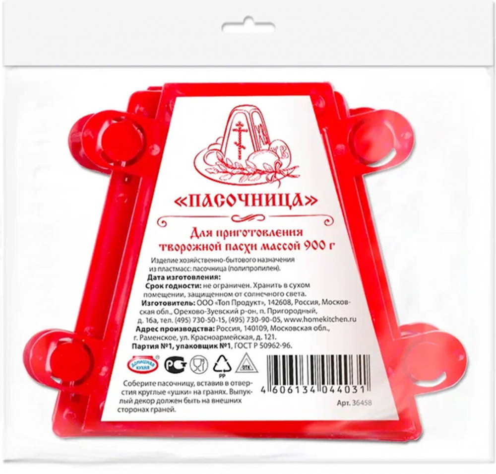 💳 Оплатить за товар можно при получении 🇰🇿 Есть бесплатная доставка по Казахстану от 1 дня 🎁 Копите бонусы с каждой покупки Подарите своей пасхальной выпечке идеальную форму и торжественный вид с пасочницей, созданной специально для приготовления ароматной творожной пасхи! Пасочница пасхальная объёмом 900 г (размеры — 18×18×18 см, в сложенном виде — 18×2×18 см) выполнена из пластика ярко-красного цвета — красиво, торжественно и по-домашнему тепло. В комплекте — подарочный рецепт традиционной творожной пасхи, чтобы вы с лёгкостью приготовили идеальное угощение даже впервые. Не упустите весеннее настроение! Закажите пасочницу уже сейчас и приготовьте творожную пасху, от которой все будут в восторге! |