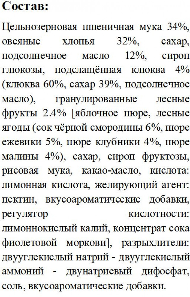 Ore Liete Печенье злаковое с лесными ягодами «Fruits of the forest»