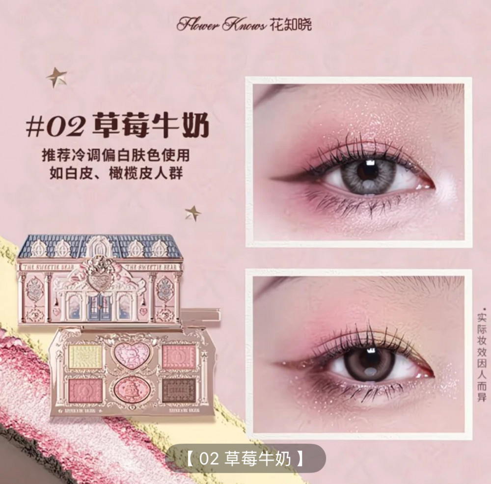 Flower Knows Тени прессованные «The Sweetie Bear», оттенок 02 Strawberry Milk—Strawberry Canélé