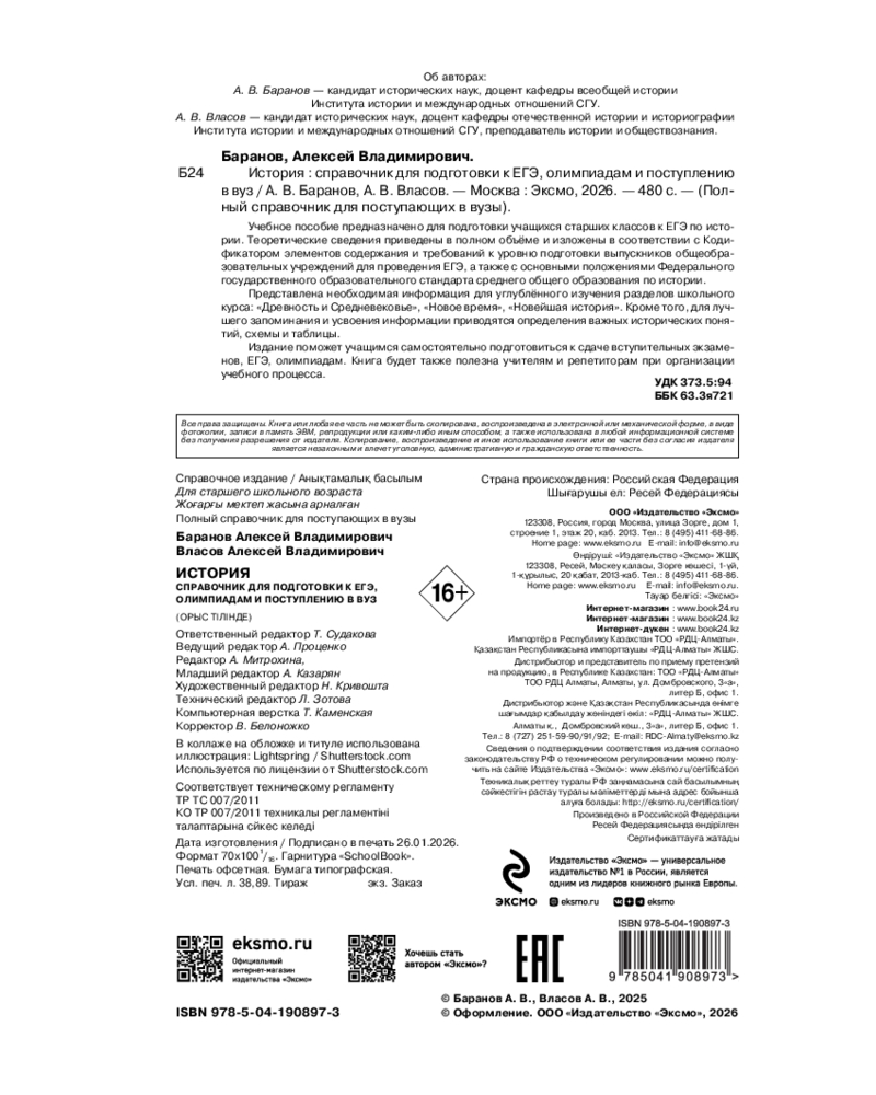 История. Справочник для подготовки к ЕГЭ, олимпиадам и поступлению в вузАлексей Владимирович Баранов, Алексей Владимирович Власов -20% +42