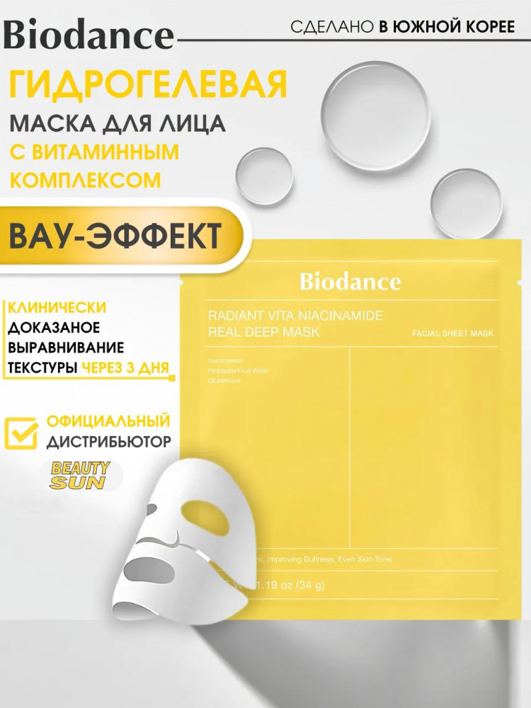 Biodance Гидрогелевая маска с ниацинамидом для сияния кожи «Biodance Radiant Vita Niacinamide Real Deep Mask»