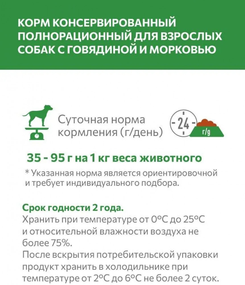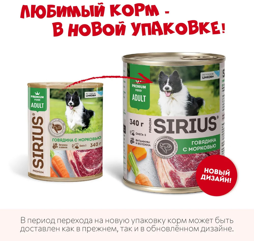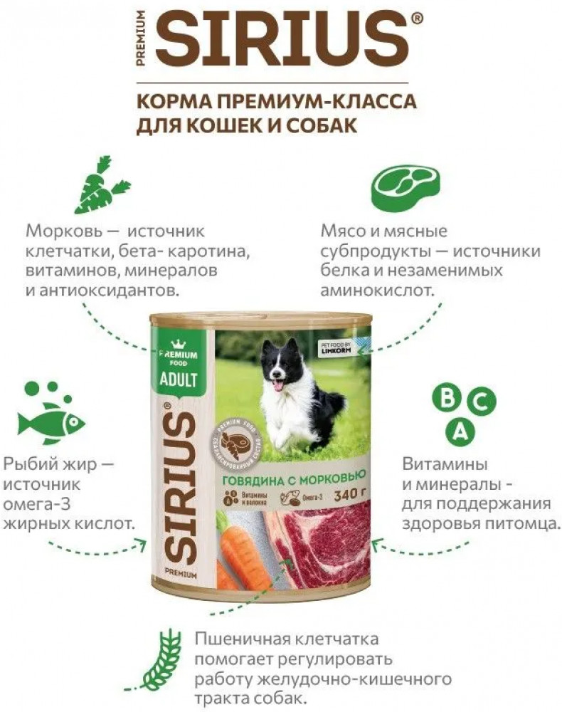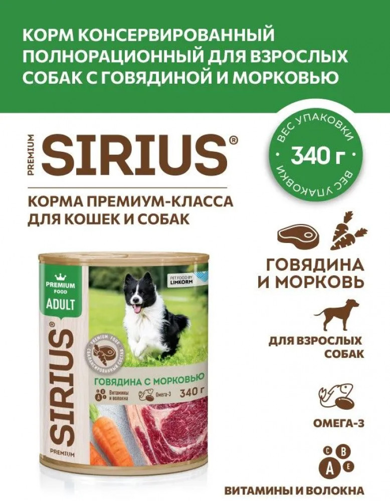 Sirius Корм влажный для взрослых собак «Говядина с морковью»