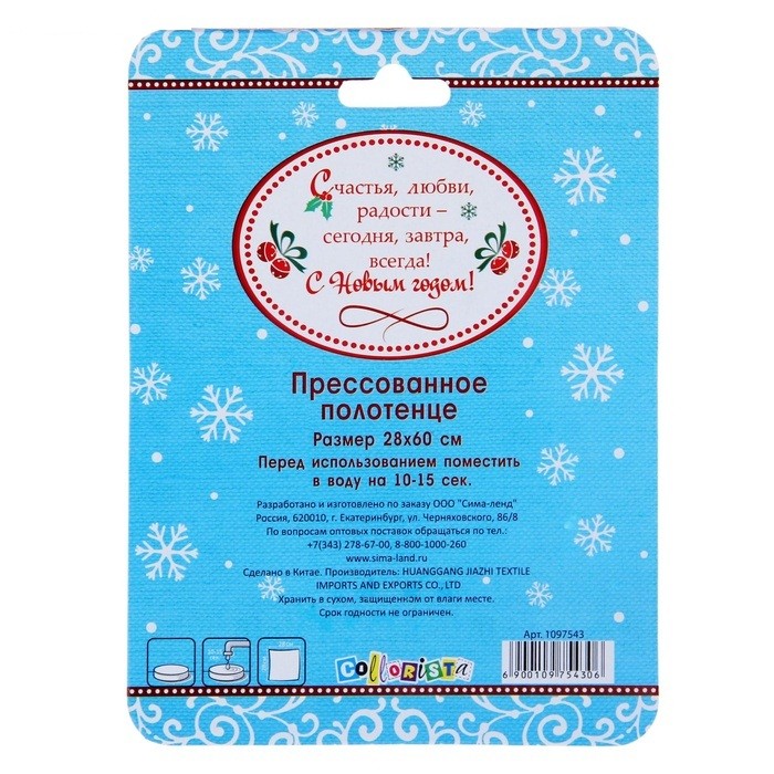 Collorista Прессованное полотенце на открытке «Счастливого нового года!» (28х60 см)В данный момент этот товар отсутствует в продаже. Возможно, у нас найдется аналогичный или похожий товар здесь. Прессованное полотенце на открытке "Collorista" станет полезным и оригинальным дополнением к подарку на Новый год. Уникальное дизайнерское оформление в виде открытки продемонстрирует вашу заботу и любовь. Изделие выполнено из натурального хлопка, что позволяет ему хорошо впитывать влагу и удерживать пыль или грязь на своей ворсистой поверхности. Полотенце перед использованием нужно подержать в воде, затем высушить. Оно пригодится в дальней дороге или путешествии, а компактный размер позволит взять его с собой куда угодно. |