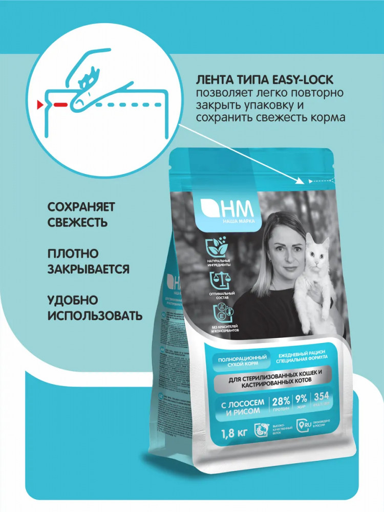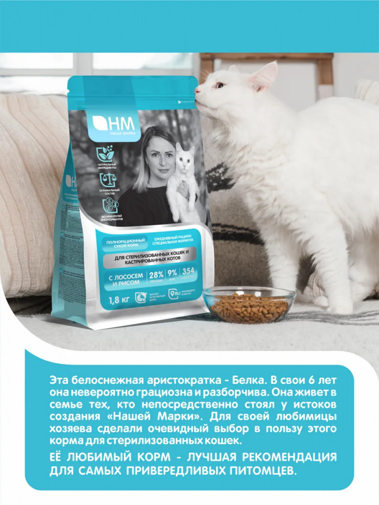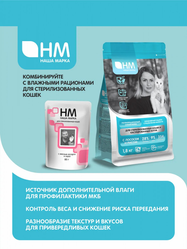 Наша Марка Корм сухой для стерилизованных кошек и кастрированных котов с лососем и рисом