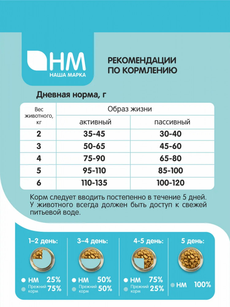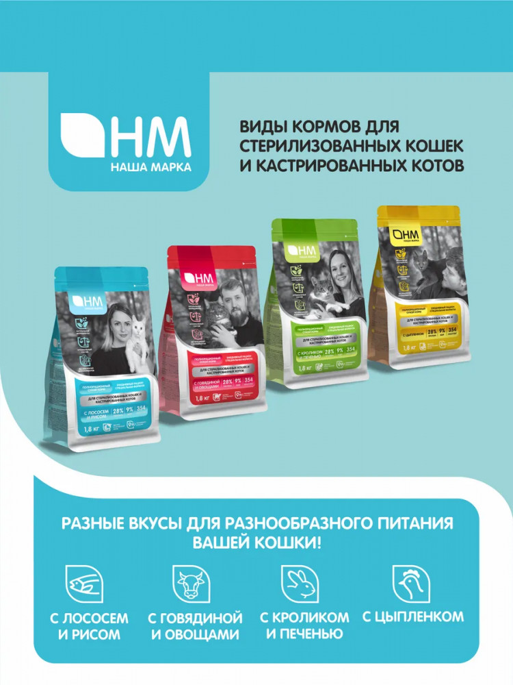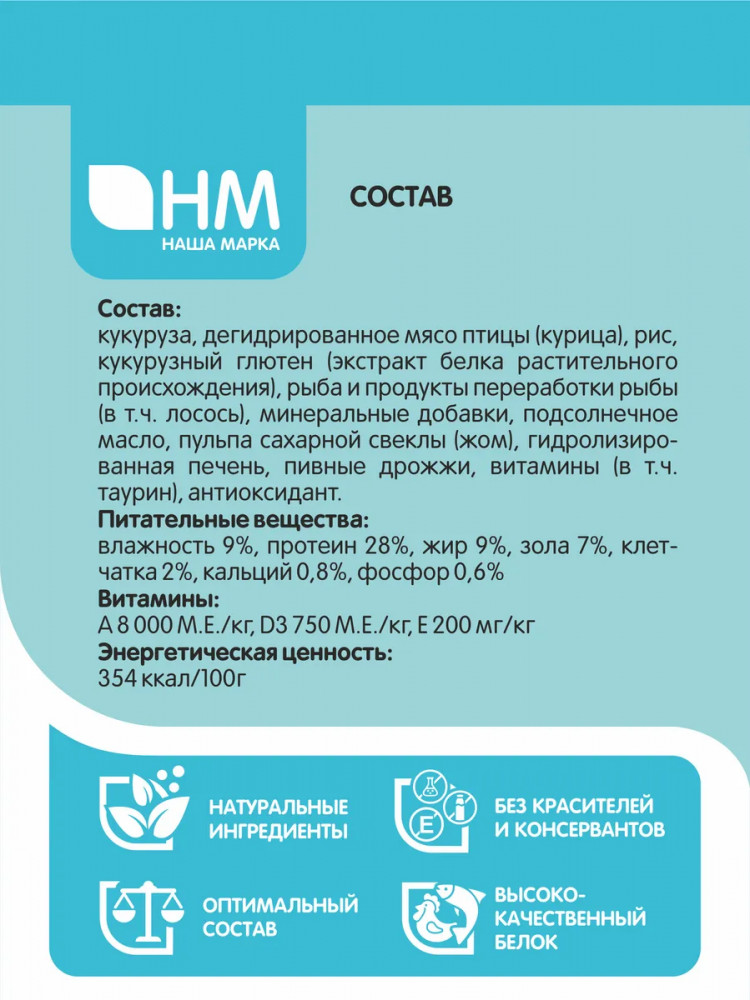 Корма премиального класса «Наша Марка» отличаются высоким качеством, приемлемой ценой и оригинальной упаковкой. Производится на современном заводе в Гатчине. |