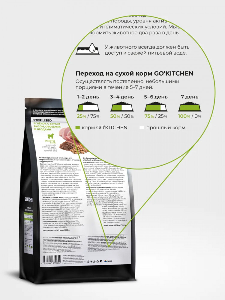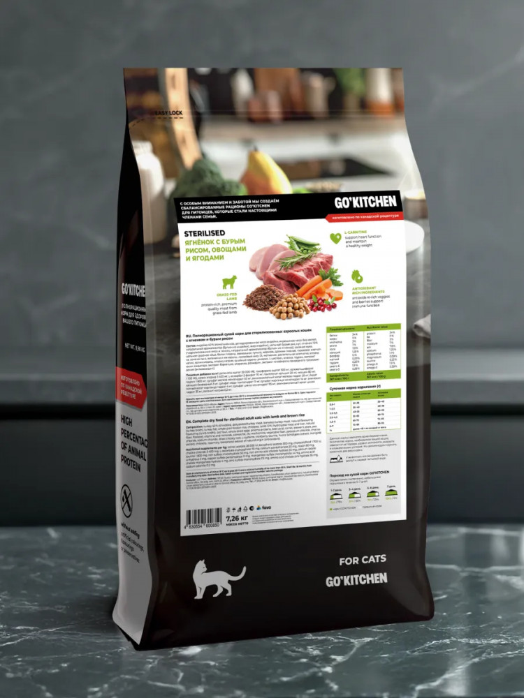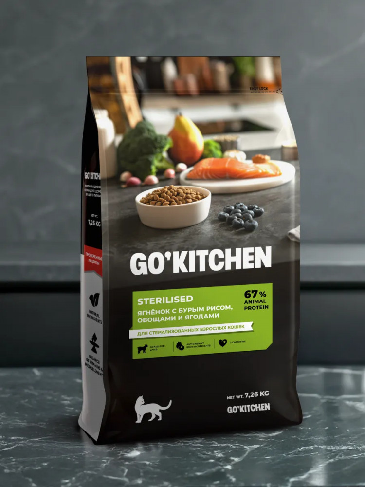 Go'kitchen Корм сухой для стерилизованных кошек с ягненком и бурым рисом «Lamb»