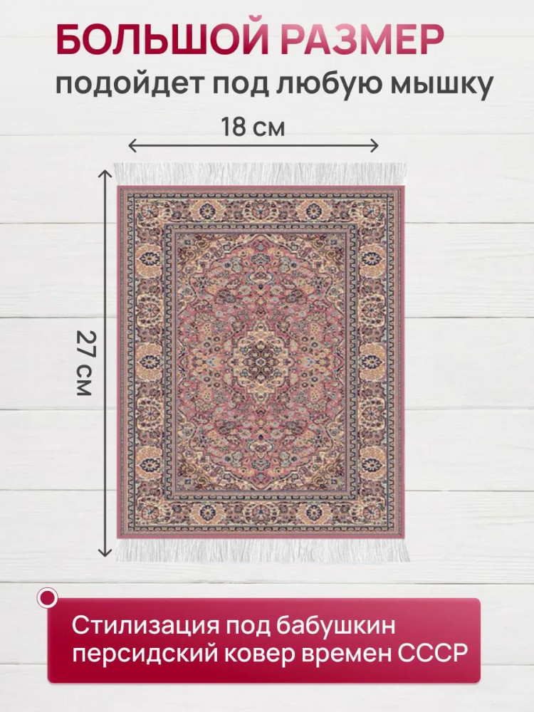 Легендарный ковёр теперь на вашем рабочем столе! Добавьте уюта и кастомного стиля вашему рабочему месту с ковриком в эстетике СССР. Этот необычный аксессуар с детализированным восточным принтом не только радует глаз, но и обеспечивает максимальный комфорт при работе за компьютером или ноутбуком.