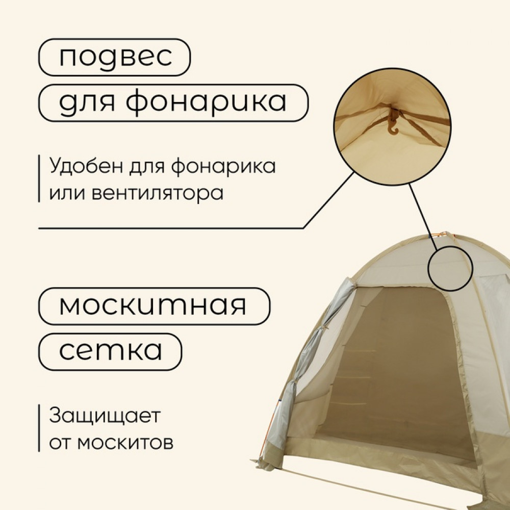 💳 Оплатить за товар можно при получении 🇰🇿 Есть бесплатная доставка по Казахстану от 1 дня 🎁 Копите бонусы с каждой покупки Кемпинговая влагоотталкивающая палатка «Volga Cool 4» разработана для комфортного размещения четырёх человек. Перед входом в спальное отделение предусмотрен тамбур для хранения личных вещей и укрытия от дождя. За счёт купольной формы после дождя вода не скапливается вверху тента, а стекает вниз. Тент выполнен из прочного полиэстера с добавлением рипстопа, устойчивого к разрывам и растяжениям. Пол палатки выполнен из армированного полиэстера и обладает высокой влагостойкостью. Палатка имеет тамбур для хранения вещей и обуви. Технология Cool защищает ткань палатки от УФ-излучения. Это снижает нагрев палатки от солнечных лучей, и внутри сохраняется комфортная температура. В спальном отделении есть 2 кармана для личных вещей и подвес для фонарика или вентилятора. У входа в спальное отделение есть 3 дополнительных кармана из полиэфирной сетки. |