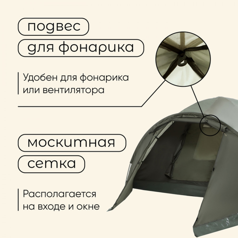 💳 Оплатить за товар можно при получении 🇰🇿 Есть бесплатная доставка по Казахстану от 1 дня 🎁 Копите бонусы с каждой покупки Трекинговая влагоотталкивающая палатка «Khibin 4» разработана для комфортного размещения четырёх человек. Перед входом в спальное отделение предусмотрен вместительный тамбур для хранения личных вещей. За счёт купольной формы после дождя вода не скапливается вверху тента, а стекает вниз.Тент выполнен из прочного полиэстера с добавлением рипстопа, устойчивого к разрывам и растяжениям. Пол палатки выполнен из армированного полиэстера и обладает высокой влагостойкостью. В спальном отделении есть 2 кармана для личных вещей и подвес для фонарика или вентилятора. |