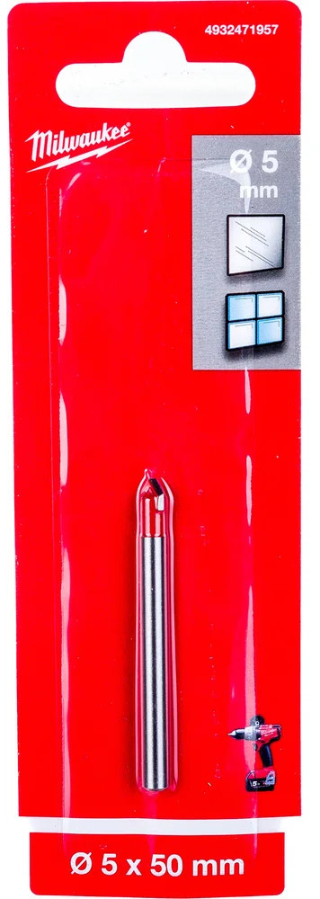 Сверло по стеклу и плитке GENII 5×50 мм Milwaukee 4932471957 подходит для сверления не каленого стекла, плитки мягкой и средней твердости, керамики. Режущая кромка сверла изготовлена из заточенного твердосплава, идеальна для быстрого сверления. Усиленная конструкция рабочей части увеличивает срок службы сверла. Наконечник окрашен в красный цвет.