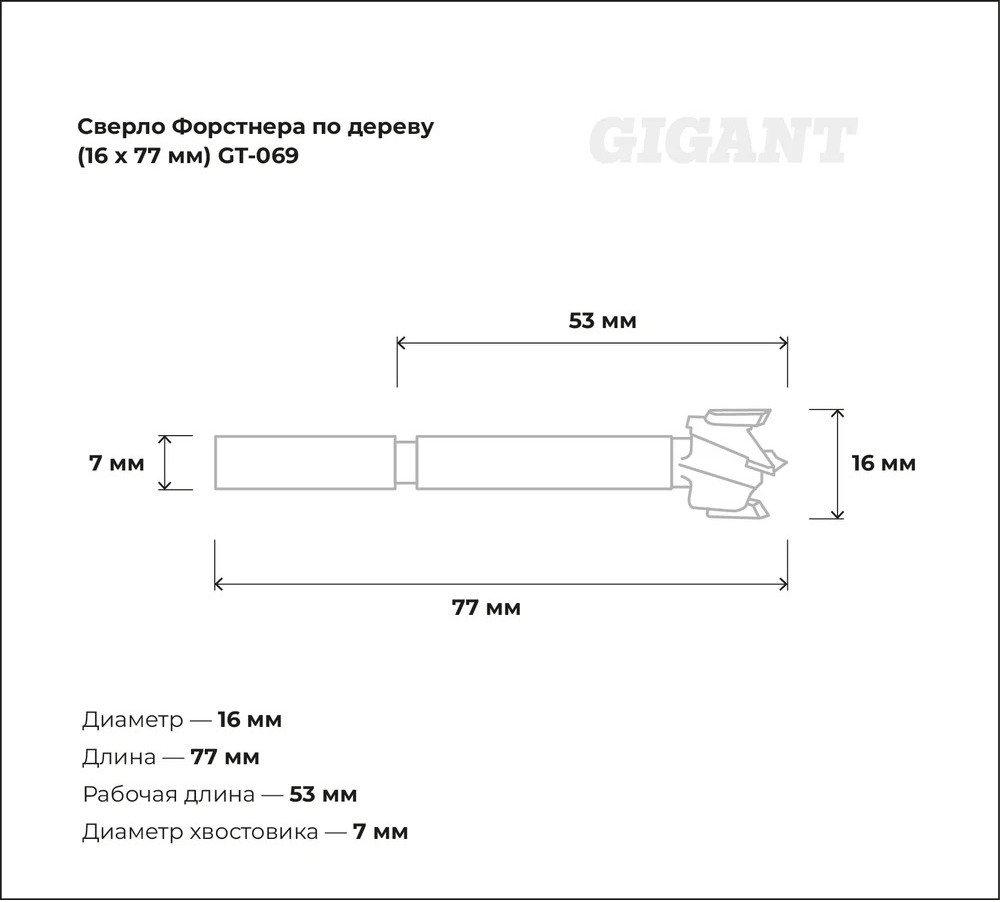 Сверло Форстнера по дереву 16×77 мм Gigant GT-069 предназначено для получения глухих отверстий в деревянных изделиях, ламинате, ДСП. Используется при установке мебельных петель. Сверло выполнено из качественной углеродистой стали. Оснащено твердосплавными пластинами, что увеличивает стойкость и производительность оснастки.