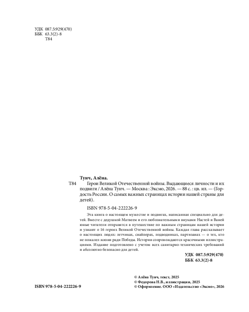 💳 Оплатить за товар можно при получении 🇰🇿 Есть бесплатная доставка по Казахстану от 1 дня 🎁 Копите бонусы с каждой покупки Серия: Гордость России. О самых важных страницах истории нашей страны для детей Это специальное издание расскажет о подвигах героев, чья храбрость, железная воля, сила духа и огромная любовь к Родине помогли одержать Великую Победу. Перед читателем оживают реальные истории лётчиков и снайперов, партизан и командиров, чьи имена навсегда вошли в историю страны. Алексей Маресьев, Зоя Космодемьянская, Лидия Литвяк, Иван Панфилов, Василий Зайцев, Ленька Голиков и многие другие — эти люди стали символами мужества и настоящего героизма. |
