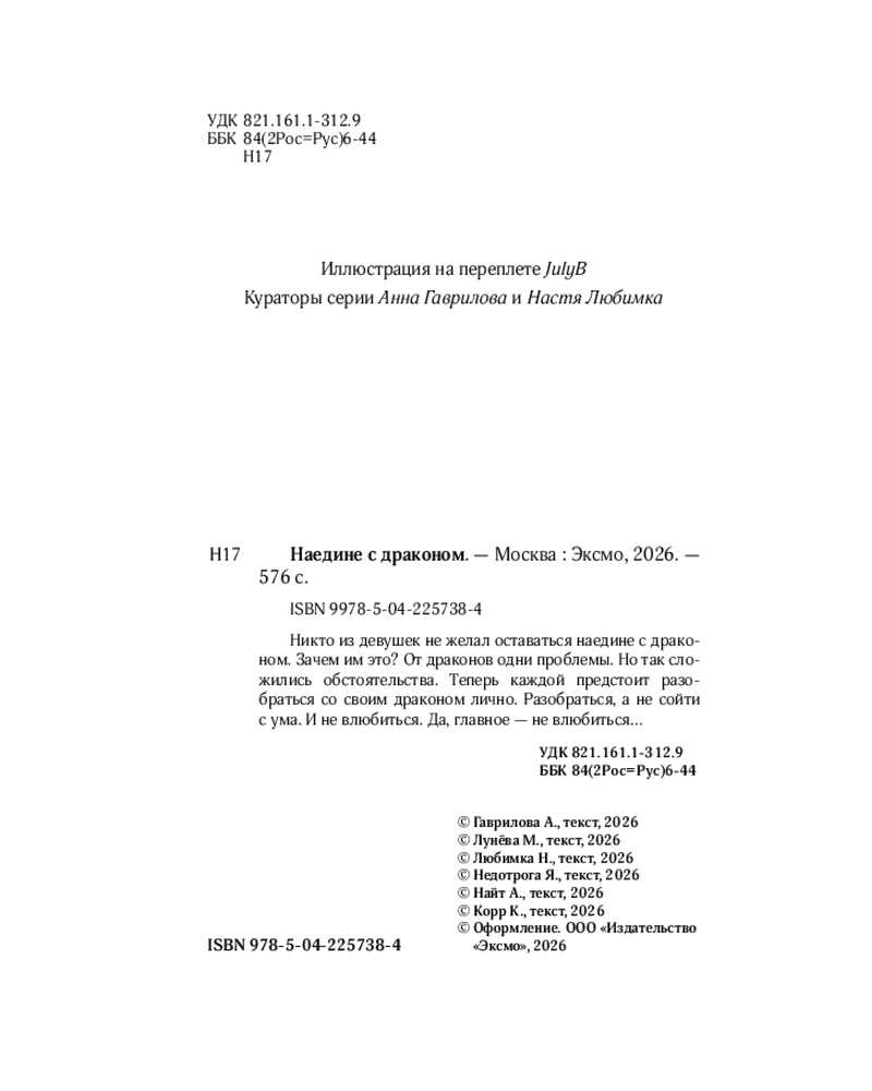 💳 Оплатить за товар можно при получении 🇰🇿 Есть бесплатная доставка по Казахстану от 1 дня 🎁 Копите бонусы с каждой покупки Серия: Искры магии. New adult ромэнтези Никто из девушек не желал оставаться наедине с драконом. Зачем им это? От драконов одни проблемы. Но так сложились обстоятельства. Теперь каждой предстоит разобраться со своим драконом лично. Разобраться, а не сойти с ума. И не влюбиться. Да, главное — не влюбиться... |