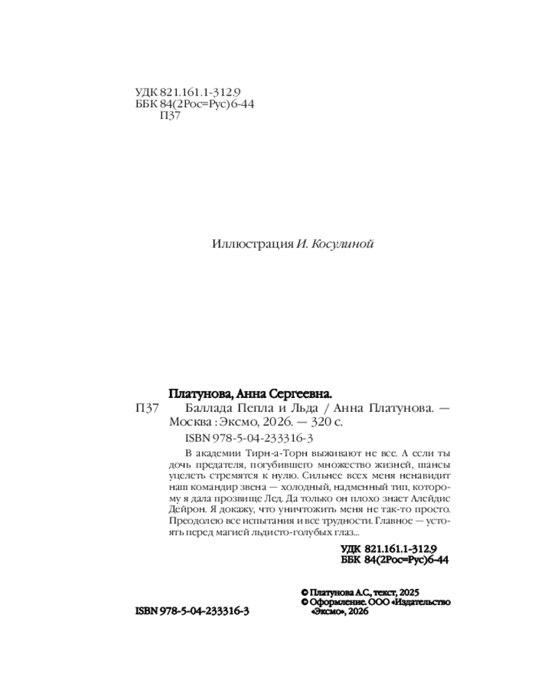 💳 Оплатить за товар можно при получении 🇰🇿 Есть бесплатная доставка по Казахстану от 1 дня 🎁 Копите бонусы с каждой покупки Серия: Колдовские миры Анны Платуновой. Новое оформление В академии Тирн-а-Торн выживают не все. А если ты дочь предателя, погубившего множество жизней, шансы уцелеть стремятся к нулю. Сильнее всех меня ненавидит наш командир звена — холодный, надменный тип, которому я дала прозвище Лед. Да только он плохо знает Алейдис Дейрон. Я докажу, что уничтожить меня не так-то просто. Преодолею все испытания и все трудности. Главное — устоять перед магией льдисто-голубых глаз... |