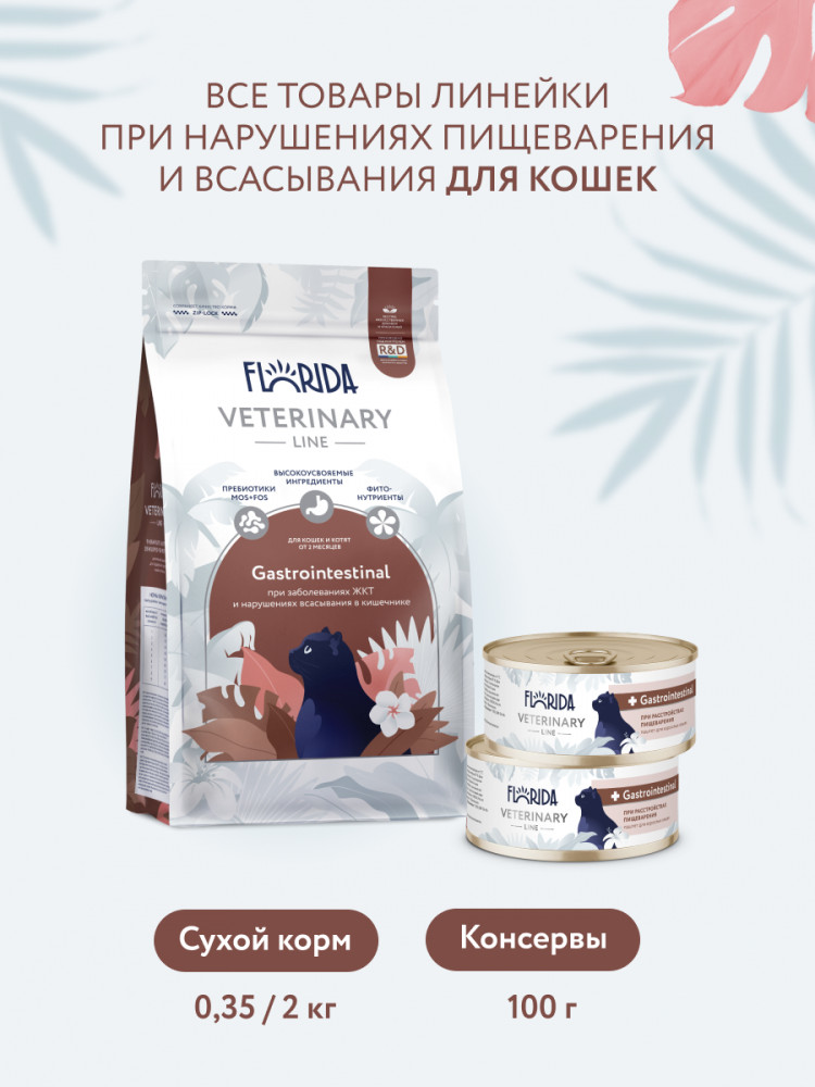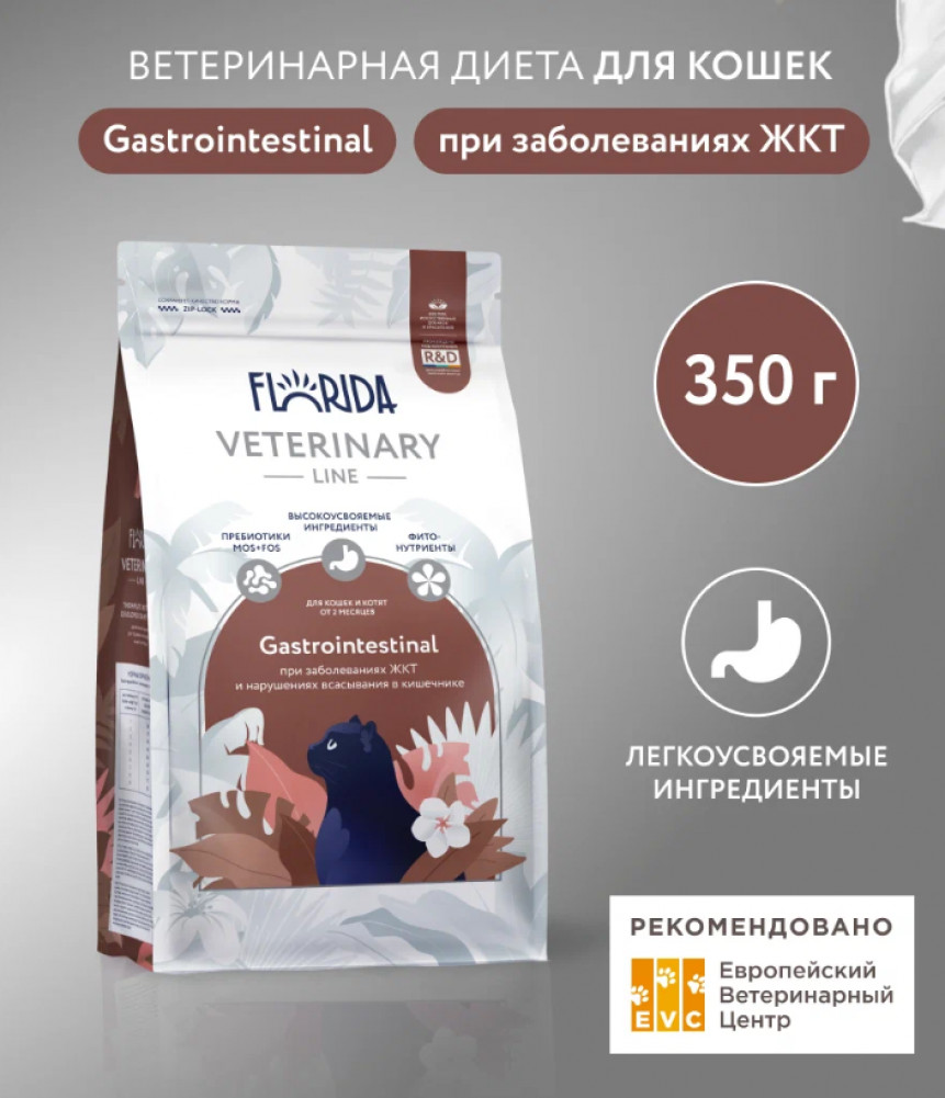 Florida Сухой корм для кошек кошек при заболеваниях желудочно-кишечного тракта и нарушениях всасывания в кишечнике «Gastrointestinal»