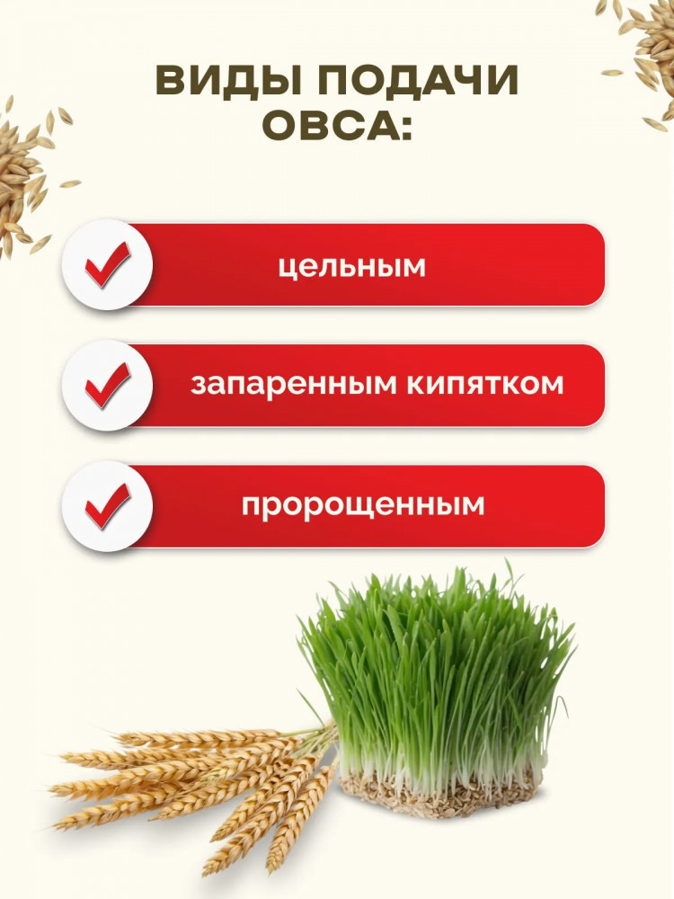 Чистый, без пыли, без плесени, сухой, отличный овес.