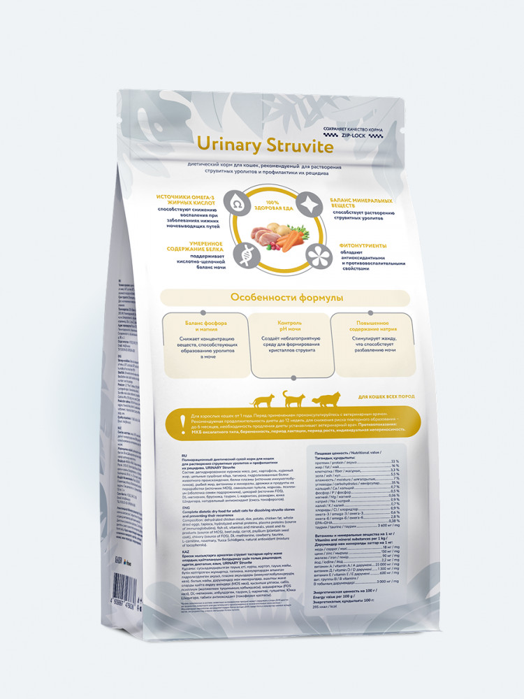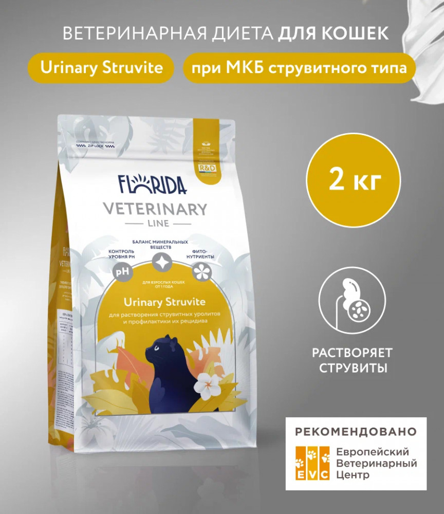 Florida Корм для взрослых кошек для растворения струвитных уролитов и профилактики их рецидива «Urinary struvite»