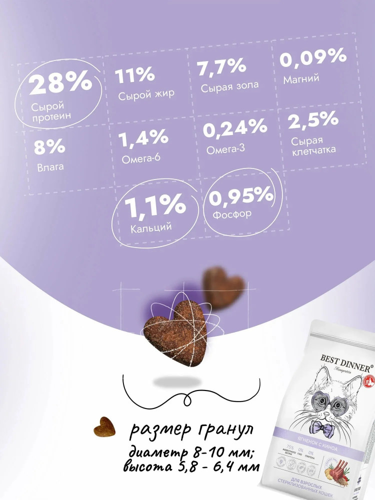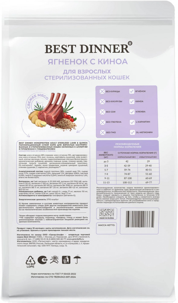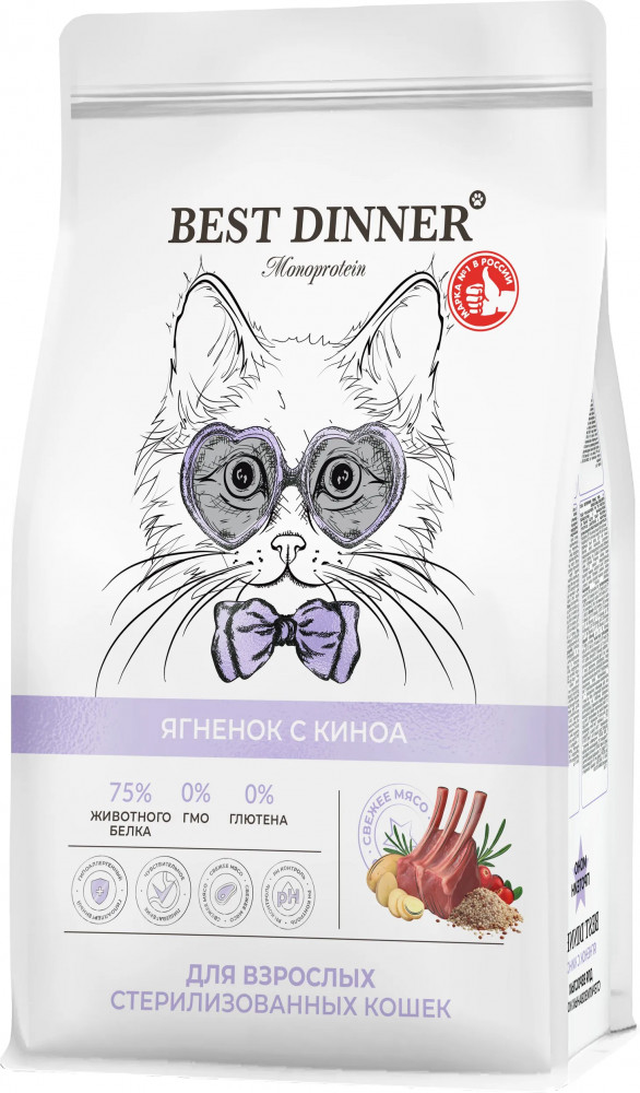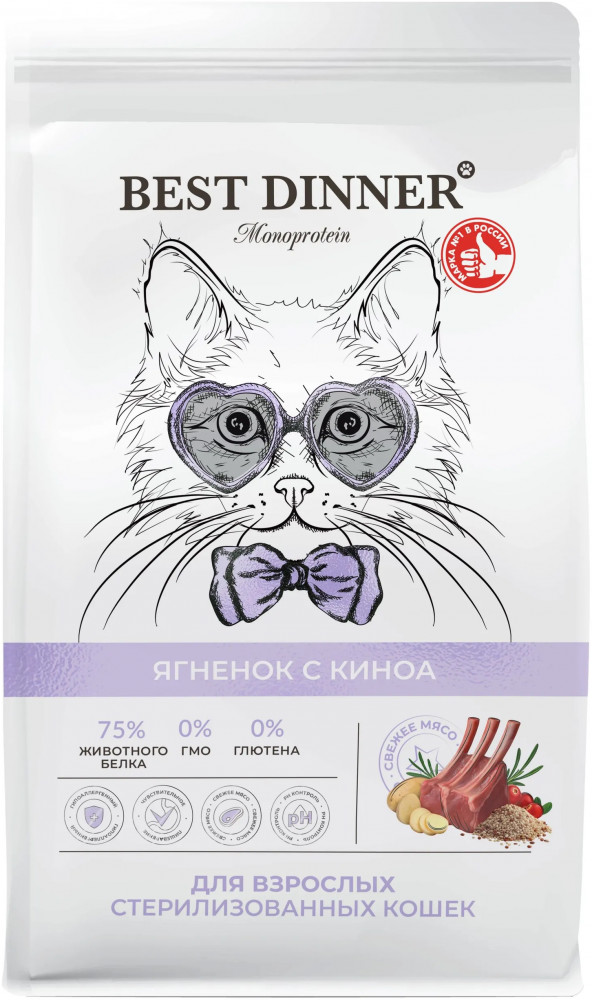 Best Dinner Сухой корм для стерилизованных кошек с ягнёнком и киноа «Monoprotein»