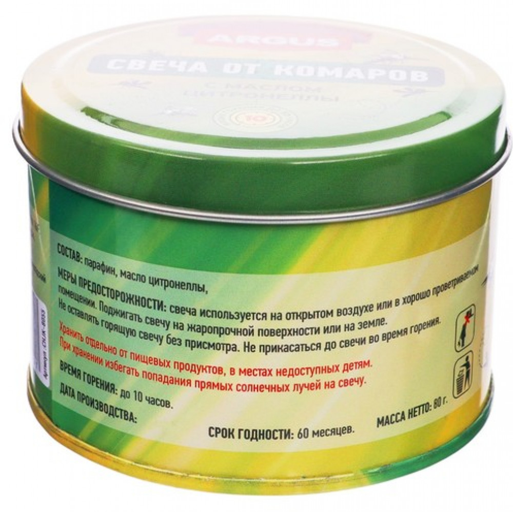 ARGUS Антимоскитная свеча с маслом цитронеллы-40% +18