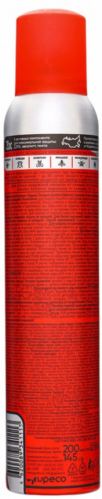 Gardex Аэрозоль от всех летающих кровососущих насекомых и клещей «Extreme»В данный момент этот товар отсутствует в продаже. Возможно, у нас найдется аналогичный или похожий товар здесь. Мощный аэрозоль-репеллент для защиты от всех видов кровососущих насекомых и клещей. Создаёт надёжный барьер даже в условиях дикой природы — подходит для рыбалки, походов и работы в лесу. Защищает одновременно от 6 видов насекомых: комаров, клещей, мошек, москитов, мокрец и слепней. Усиленная формула сохраняет действие до 4 часов на коже и до 5 дней на одежде. Удобный распылитель с регулируемой подачей средства. Флакон 200 мл рассчитан на длительное использование. Активные компоненты блокируют рецепторы насекомых, делая человека «невидимым» для кровососов. При нанесении на одежду образует защитный слой, устойчивый к дождю и поту. |