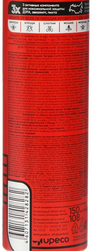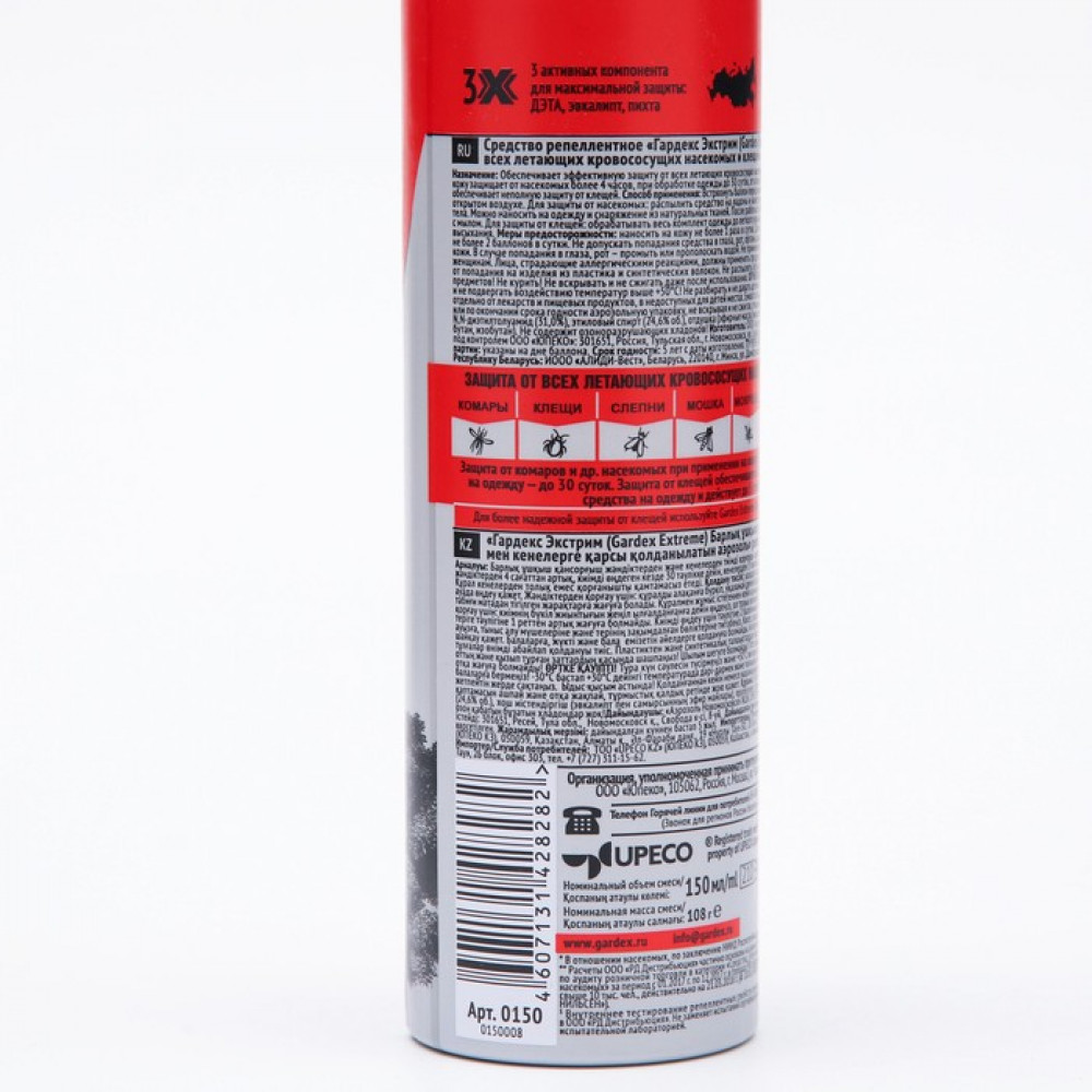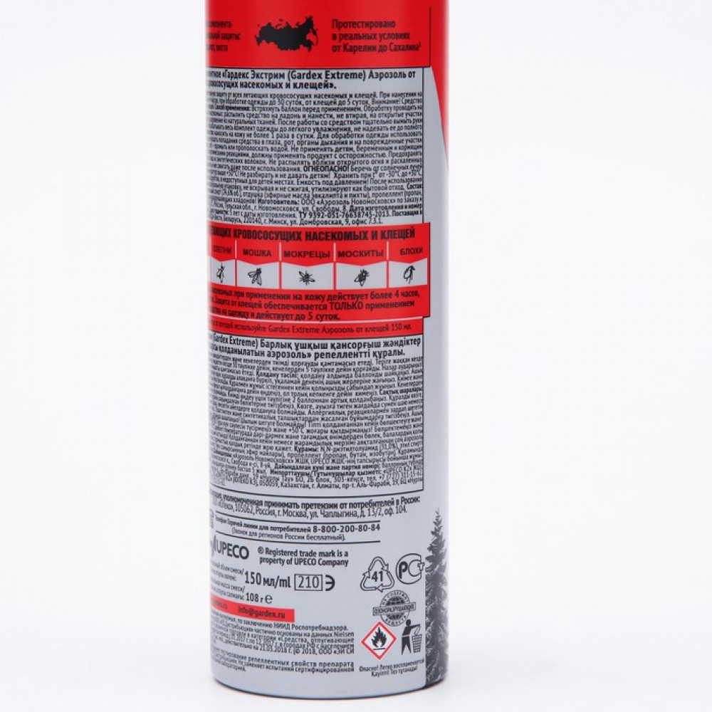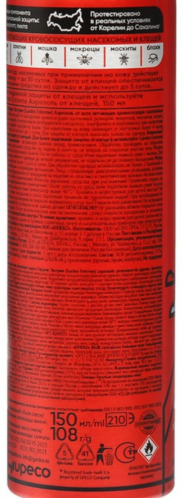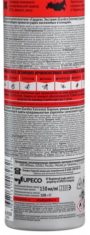 💳 Оплатить за товар можно при получении 🇰🇿 Есть бесплатная доставка по Казахстану от 1 дня 🎁 Копите бонусы с каждой покупки Защищает от всех летающих кровососущих насекомых (комаров, москитов, слепней, мокрецов, мошек, блох), а также от таежных и лесных клещей. Подходит для нанесения на открытые участки кожи или на одежду и снаряжение из натуральных тканей. Защита от комаров и других летающих насекомых при применении на кожу — более 4 часов, на одежду — до 30 суток. Защита от клещей обеспечивается ТОЛЬКО применением средства на одежду и действует до 5 суток. Встряхните баллон перед применением. От комаров: распылите средство на ладонь и нанесите, не втирая, на открытые участки тела не более 1 раза в сутки. От клещей: обработайте одежду до легкого увлажнения. Используйте вещи после полного высыхания. Не допускайте попадания средства в нос, рот, глаза и на поврежденные участки кожи, а также на синтетические ткани и пластмассовые изделия. |