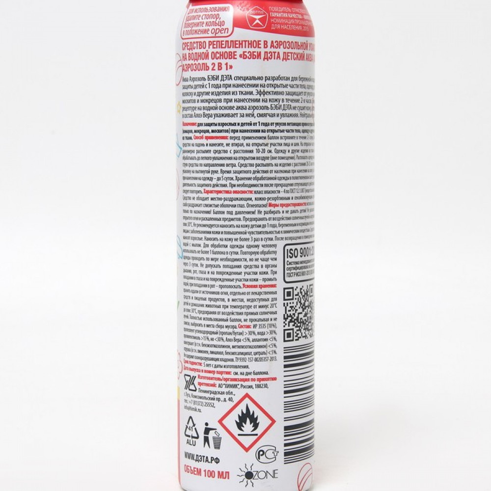 💳 Оплатить за товар можно при получении 🇰🇿 Есть бесплатная доставка по Казахстану от 1 дня 🎁 Копите бонусы с каждой покупки Аэрозоль обеспечивает защиту в течение двух часов — как раз на время прогулки. Особый состав 2 в 1 оберегает и успокаивает нежную кожу малыша, не содержит спирта. Его можно использовать для обработки коляски и детской одежды. Продукция «Дэта Аква» создаётся на уникальной водной основе, в отличие от обычных спиртовых средств. Не сушат кожу. Обладают приятным натуральным ароматом апельсина. Благодаря входящему в состав маслу пихты ухаживают за кожей при нанесении. Не содержат спирта. Современные репелленты «Дэта» безвредны для людей и моментально уничтожают таких насекомых, как комары, мошки, клещи, слепни, мокрецы. Они обеспечат вам комфортный летний отдых на свежем воздухе и в помещении.«Бэби Дэта» создана специально для защиты малышей от 1 года. Все средства этой марки имеют лёгкую текстуру и содержат алоэ вера, что делает их подходящими для ребёнка. Новые разработки и исследования проводятся каждый год, что позволяет создавать качественную и безопасную продукцию. |