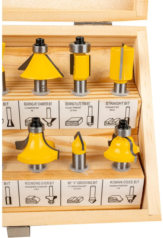Gigant Набор фрез для декоративного примененияВ данный момент этот товар отсутствует в продаже. Возможно, у нас найдется аналогичный или похожий товар здесь. Набор фрез 12 шт. для декоративного применения Gigant GC-0075 состоит из трех пазовых прямых фрез, кромочной прямой фрезы, двух пазовых галтельных фрез, пазовой фрезы «ласточкин хвост», кромочной конусной фрезы и четырех кромочных калевочных. |