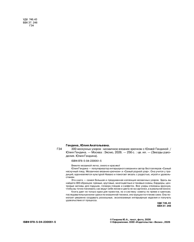 | 300 нескучных узоров. Мозаичное вязание крючком с Юлией Гендиной Юлия Анатольевна Гендина +117 (бонусов)