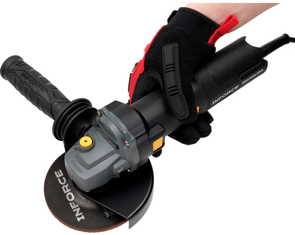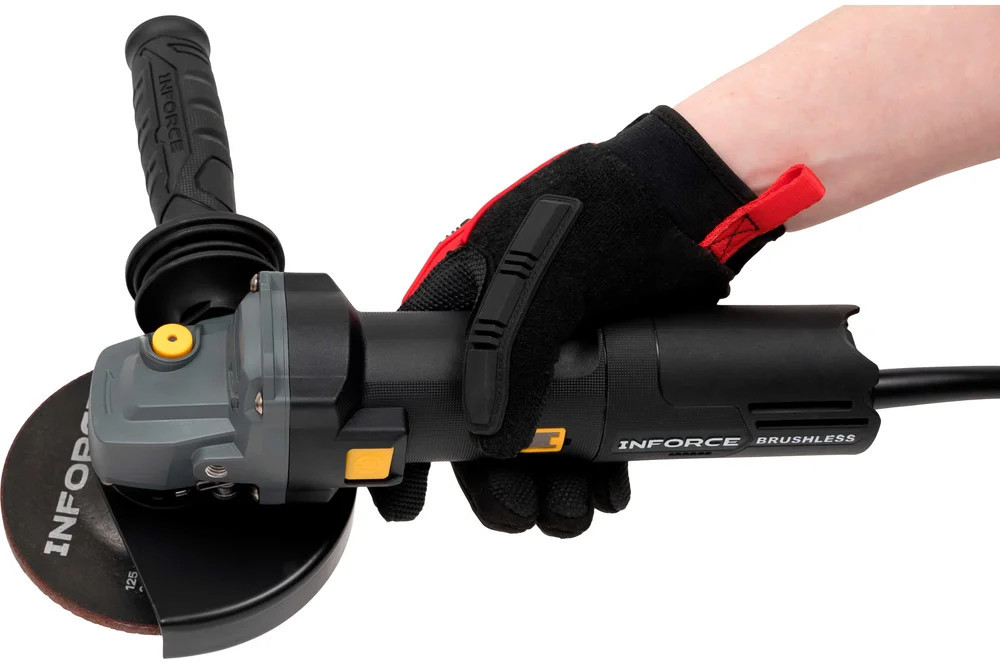 Inforce Угловая шлифовальная машина AG5015ASC-BLВ данный момент этот товар отсутствует в продаже. Возможно, у нас найдется аналогичный или похожий товар здесь. Угловая шлифовальная машина Inforce AG5015ASC-BL имеет функцию антирестарта, постоянную скорость и плавный пуск. Быстросъемный кожух с подпружиненным рычажным механизмом не требует подстройки силы зажатия, обеспечивает быструю регулировку угла и снятие без инструмента. Стальная сетка предназначена для защиты от попадания стружки в двигатель. Бесщеточный двигатель: больше мощность и момент: при тех же габаритах и потребляемом токе — выше эффективность и крутящий момент, особенно на низких оборотах под нагрузкой. Долговечность: нет графитовых щёток, которые стираются. Срок службы двигателя и подшипников значительно увеличен. Энергоэффективность: умная электроника точно подаёт ток, снижая потребление энергии. Надёжность: нет искрения щёток, что безопаснее в пыльной/загрязнённой среде. Лучше переносит перегрузки. Меньше вес и нагрев: конструкция компактнее, а КПД выше, поэтому корпус греется меньше. Нижний опорный фланец с радиальной насечкой — это профессиональное, узкоспециализированное решение для повышения надежности и безопасности при работе с абразивными дисками на мягкой основе (особенно с лепестковыми кругами). Резко снижает риск проскальзывания (проворачивания) диска на шпинделе. Это особенно критично при боковых нагрузках (например, при шлифовке лепестковым кругом, когда диск работает «на излом») или при заклинивании отрезного диска в пропиле. Кнопка с защитой от непроизвольного запуска исключает случайный пуск инструмента при переноске, падении, ударе, случайном нажатии на курок, например, при подключении к сети или установке диска. |