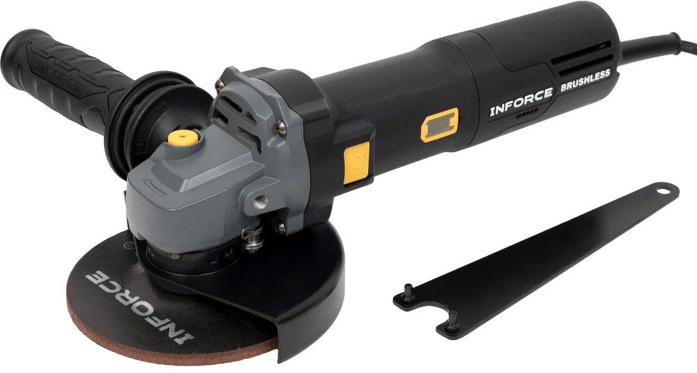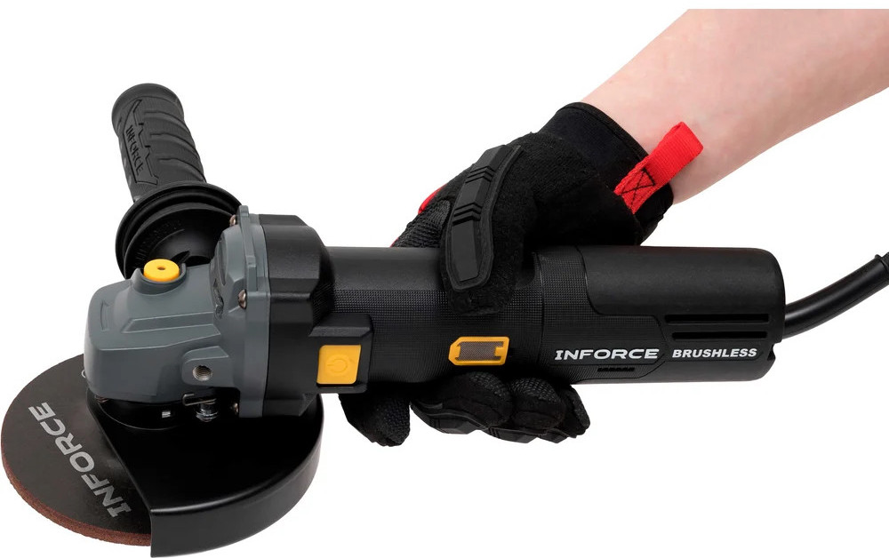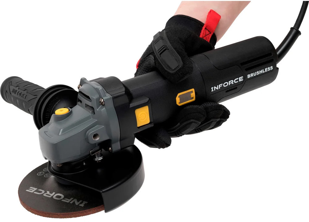 Inforce Угловая шлифовальная машина AG5015ASCV-BLВ данный момент этот товар отсутствует в продаже. Возможно, у нас найдется аналогичный или похожий товар здесь. Угловая шлифовальная машина Inforce AG5015ASCV-BL имеет функцию антирестарта, постоянную скорость, плавный пуск и регулятор скорости. Это бесщеточная УШМ с регулировкой оборотов для разных материалов. Предусмотрена антивибрационная рукоятка. Быстросъемный кожух с подпружиненным рычажным механизмом не требует подстройки силы зажатия, быстрая регулировка угла и снятие без инструмента. Стальная сетка для защиты от попадания стружки в двигатель. Идеальна для тонкой шлифовки и резки. Бесщеточный двигатель: больше мощность и момент: при тех же габаритах и потребляемом токе — выше эффективность и крутящий момент, особенно на низких оборотах под нагрузкой. Долговечность: нет графитовых щёток, которые стираются. Срок службы двигателя и подшипников значительно увеличен. Энергоэффективность: умная электроника точно подаёт ток, снижая потребление энергии. Надёжность: нет искрения щёток, что безопаснее в пыльной/загрязнённой среде. Лучше переносит перегрузки. Меньше вес и нагрев: конструкция компактнее, а КПД выше, поэтому корпус греется меньше. Нижний опорный фланец с радиальной насечкой — это профессиональное, узкоспециализированное решение для повышения надежности и безопасности при работе с абразивными дисками на мягкой основе (особенно с лепестковыми кругами). Резко снижает риск проскальзывания (проворачивания) диска на шпинделе. Это особенно критично при боковых нагрузках (например, при шлифовке лепестковым кругом, когда диск работает «на излом») или при заклинивании отрезного диска в пропиле. Кнопка с защитой от непроизвольного запуска исключает случайный пуск инструмента при переноске, падении, ударе, случайном нажатии на курок, например, при подключении к сети или установке диска. |