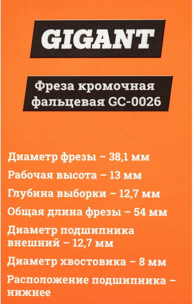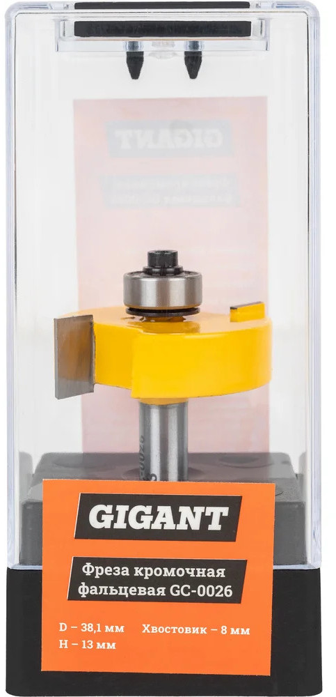 Фреза кромочная фальцевая D38.1 H13 мм хвостовик 8 мм Gigant GC-0026 применяется при оформлении паза по кромке изделия и для получения прямоугольной выборки с фальцем.
