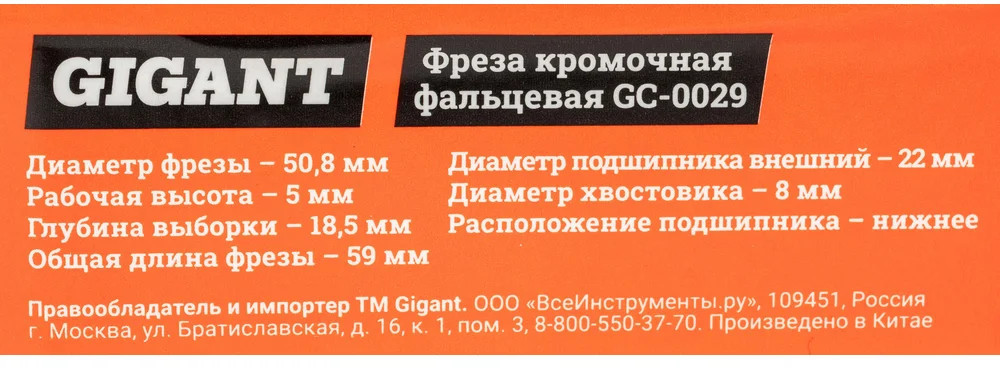 Фреза кромочная фальцевая D50.8 H5 мм хвостовик 8 мм Gigant GC-0029 предназначена для работы по дереву. Ее применяют при оформлении паза по кромке и декоративной отделке, также можно использовать для изготовления шипового соединения. В случае поломки или затуплении фрезы ее необходимо немедленно заменить, что сделает работу наиболее комфортной и безопасной.