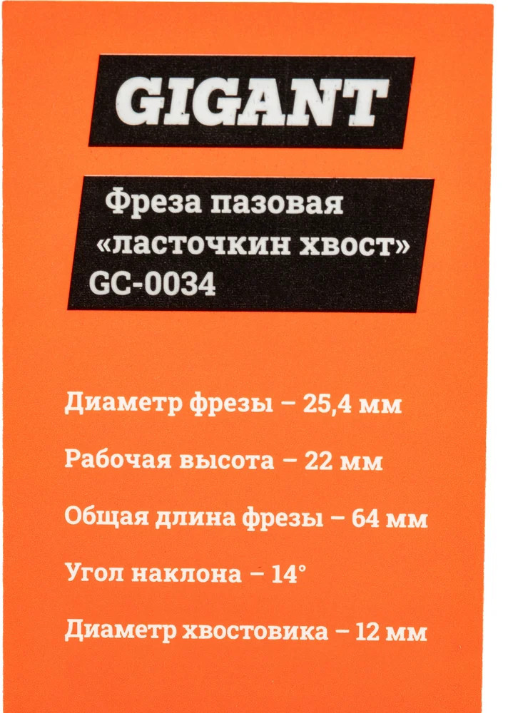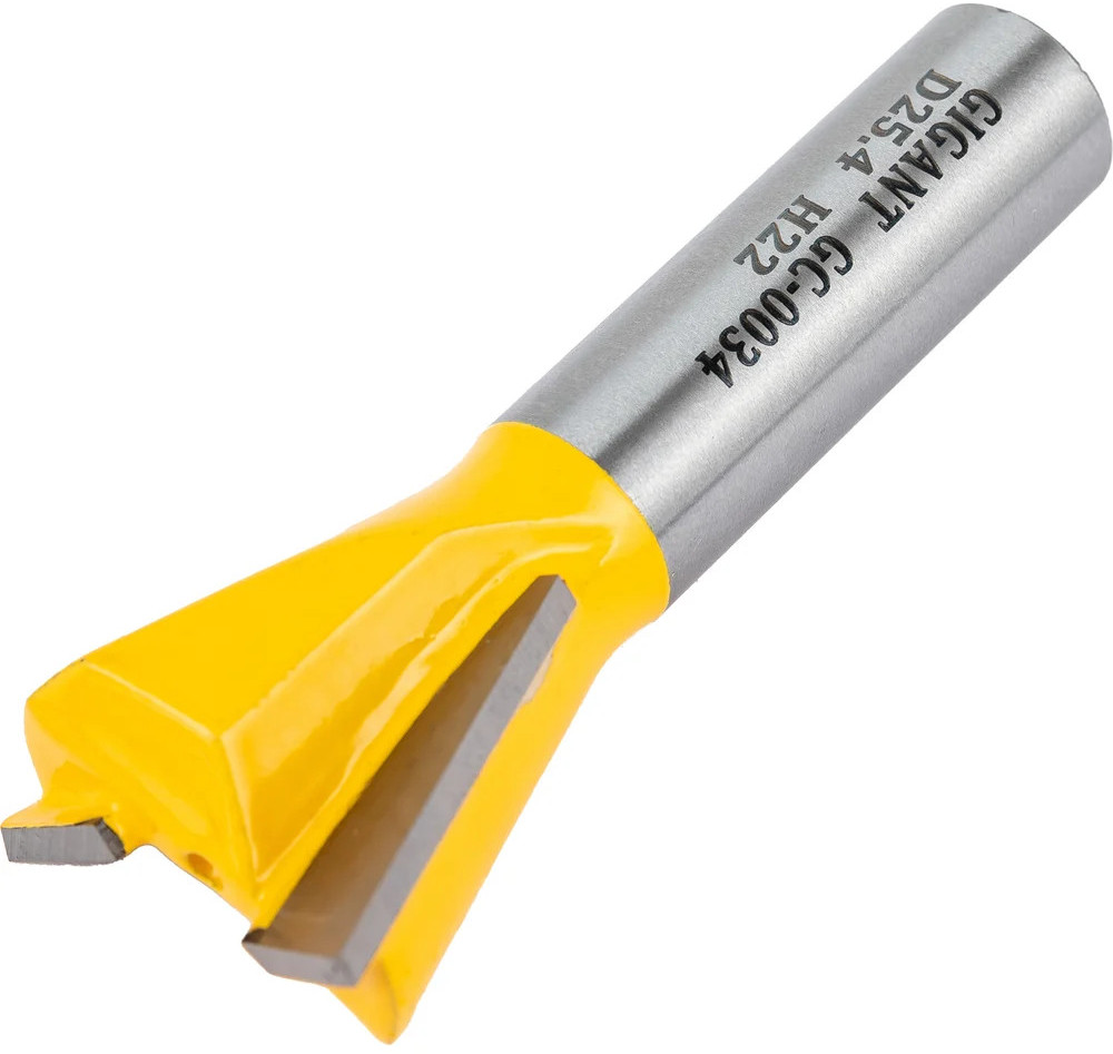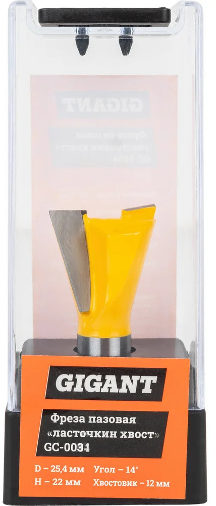 Фреза пазовая «ласточкин хвост» D25.4 H22 мм ∠14 хвостовик 12 мм Gigant GC-0034 предназначена для выполнения шиповых соединений корпусной мебели, ящичных соединений, врезания поперечных планок. Широко применяется при реставрационных работах по антикварной мебели. Используется совместно с фрезерными машинами и фрезерными станками. Фреза изготавливается из высококачественных материалов и характеризуется точно рассчитанной геометрией режущей кромки, обработанной алмазными дисками до точности биения 0.02 мм. Структура твердого сплава гарантирует его высокую стойкость к выщерблению по режущей кромке и, следовательно, качество обработки изделия.