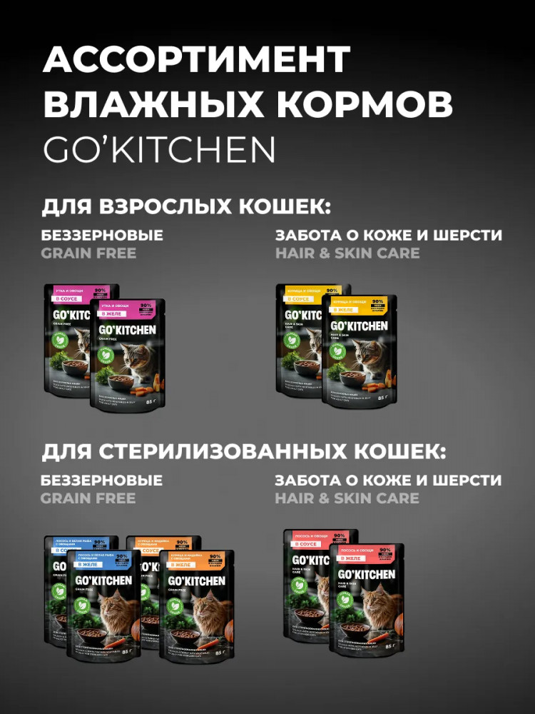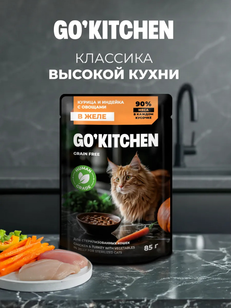 Go'kitchen Корм влажный беззерновой для стерилизованных кошек с курицей и индейкой в соусе «Chicken & Turkey In Souce»