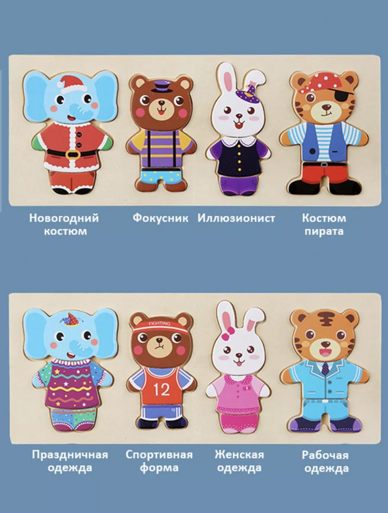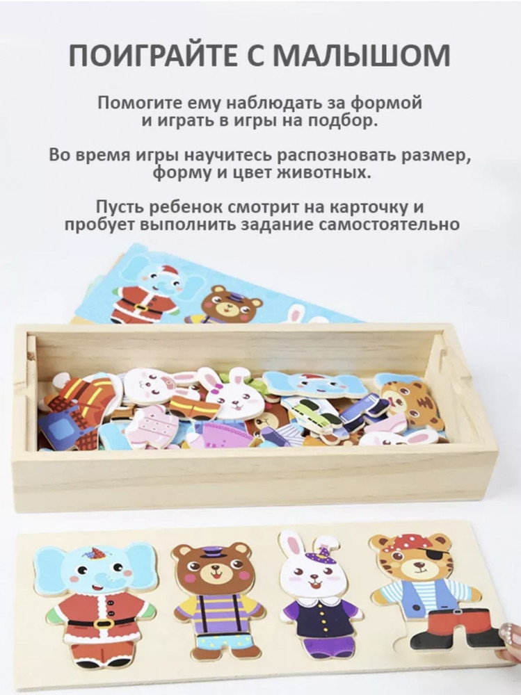 💳 Оплатить за товар можно при получении 🇰🇿 Есть бесплатная доставка по Казахстану от 1 дня 🎁 Копите бонусы с каждой покупки Деревянная развивающая игрушка для детей. Головоломка-пазл дерево. Игра «одевание животных». 5 наборов одежды для каждого животного. Игра с переодеваниями поможет распознать ребенку профессиональную одежду и расширить свои знания. Яркие костюмы и картинки привлекут интерес ребенка к развивающей игре. Родители могут играть с детьми, научить их наблюдать за формой и играть в игры на подбор, распознавать размер, форму, цвет и животных. Ребенок собирает костюмы по шаблону, развивает мышление и внимательность. Взаимодействие рук и глаз ребенка. Развитие концентрации и воображения детей. Раннее развитие ребенка. Игры для мальчиков и девочек. Развитие малышей. |