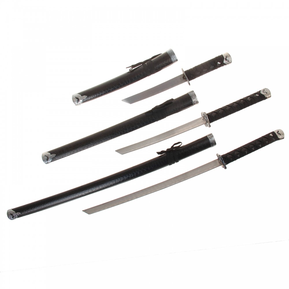 Катаны сувенирные 3 в 1 на подставке, черные ножны, под змею-40% +385