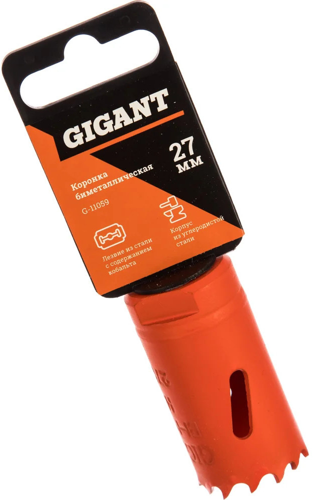 Коронка биметаллическая Gigant G-11059 предназначена для работ по металлу, также может использоваться по гипсокартону и пластику. Изготовлена по современным технологиям и отвечает высоким требованиям специалистов. Максимальная глубина сверления составляет 38 мм, диаметр коронки — 27 мм.