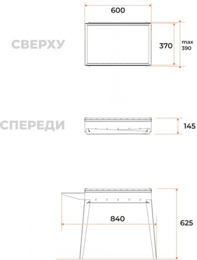 💳 Оплатить за товар можно при получении 🇰🇿 Есть бесплатная доставка по Казахстану от 1 дня 🎁 Копите бонусы с каждой покупки Мангал «Классика 600» — компактный и надёжный гриль-мангал для приготовления блюд на открытом огне. Конструкция из стали толщиной 2 мм устойчива к высоким температурам и предотвращает деформации при эксплуатации. В сложенном виде мангал удобно хранить и перевозить. Рабочая зона шириной 60 см рассчитана на размещение до 11 шампуров, что позволяет готовить одновременно до 2.5 кг мяса. Усиленная топка выдерживает дровяную растопку. Складные ножки обеспечивают компактность при хранении, а боковая полка создаёт дополнительное пространство для размещения продуктов и инструментов. Толщина стали 2 мм — прочность и долговечность конструкции. До 11 шампуров — оптимально для семьи и компании. Складные ножки — компактное хранение и удобная транспортировка. |
