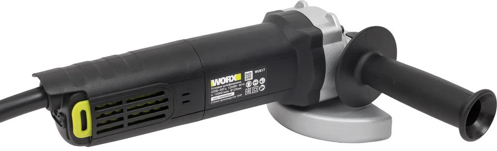 Угловая шлифмашина WORX Professional WU817 предназначена для профессионального использования, что подтверждается её мощностью в 1200 Вт и напряжением 220 В. Она оснащена щеточным двигателем, который обеспечивает стабильную работу при максимальных оборотах 12000 об/мин. Удобство использования обеспечивается сдвижной клавишей включения и возможностью регулировки положения кожуха без инструмента. Модель имеет блокировку шпинделя при заклинивании диска, что повышает безопасность работы. Длина кабеля 2.5 метра позволяет свободно перемещаться в рабочей зоне. Шлифмашина поставляется в удобной коробке, что облегчает её транспортировку и хранение.
