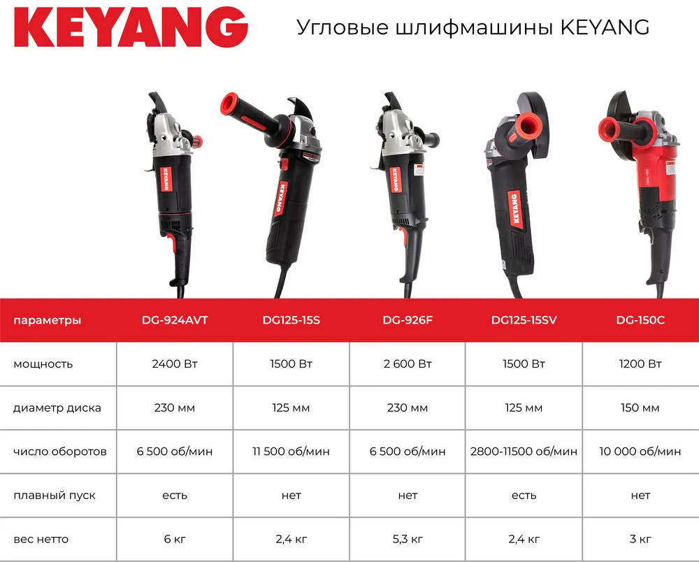 Keyang Шлифмашина угловая DG230-22В данный момент этот товар отсутствует в продаже. Возможно, у нас найдется аналогичный или похожий товар здесь. Угловая шлифмашина KEYANG DG230-22 служит для выполнения отделочных работ на поверхностях из синтетической смолы, шифера, кирпича и мрамора. Подходит для шлифования железа, бронзы, алюминия, проточки; резки плитки и камня; зачистки мест сварки и удаления ржавчины. Инструмент обладает оптимальным набором функций для эффективной и безопасной работы: Двигатель мощностью 2200 Вт обеспечивает высокую производительность. Прямое охлаждение обеспечивает длительный срок службы. Плавный пуск для лёгкой и ровной работы под нагрузкой. Для удобства пользователя дополнительная рукоятка может быть установлена слева или справа. Кожух быстро и легко регулируется, защищает пользователя от получения травм и препятствует разлёту частиц пыли из зоны шлифовки. |