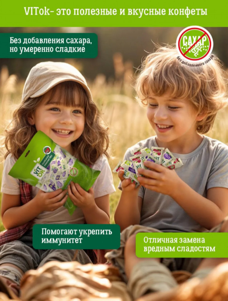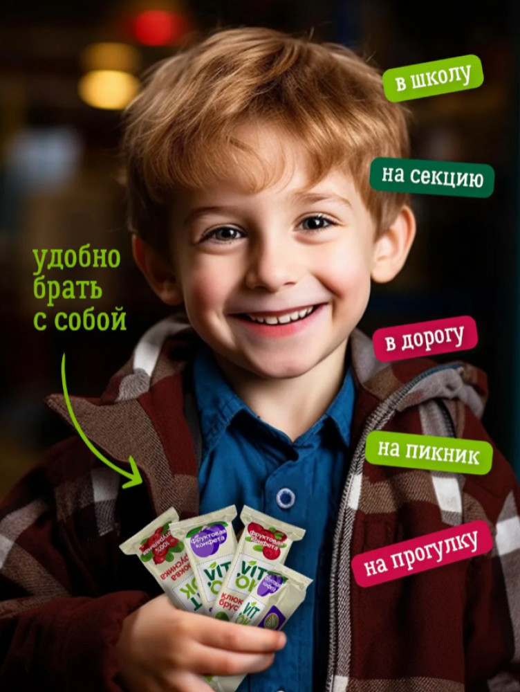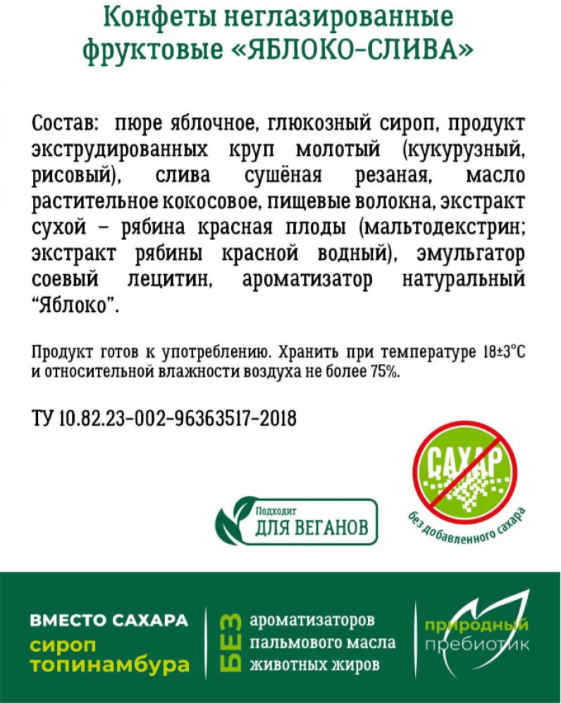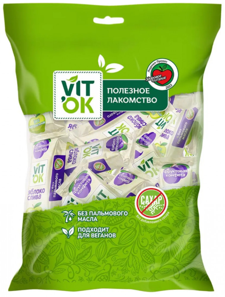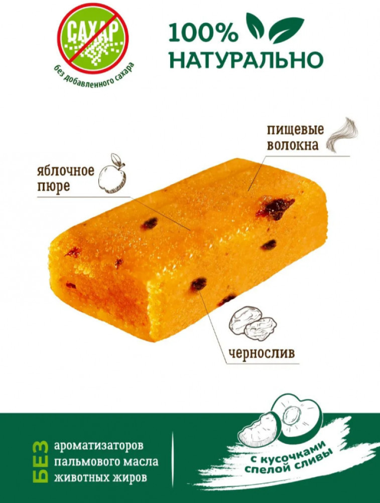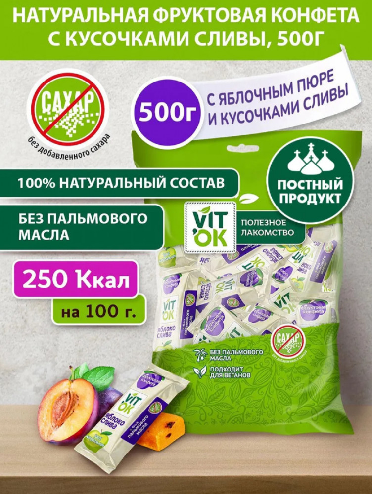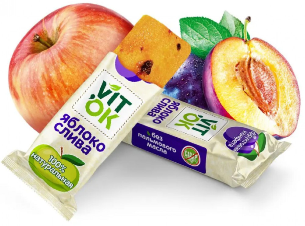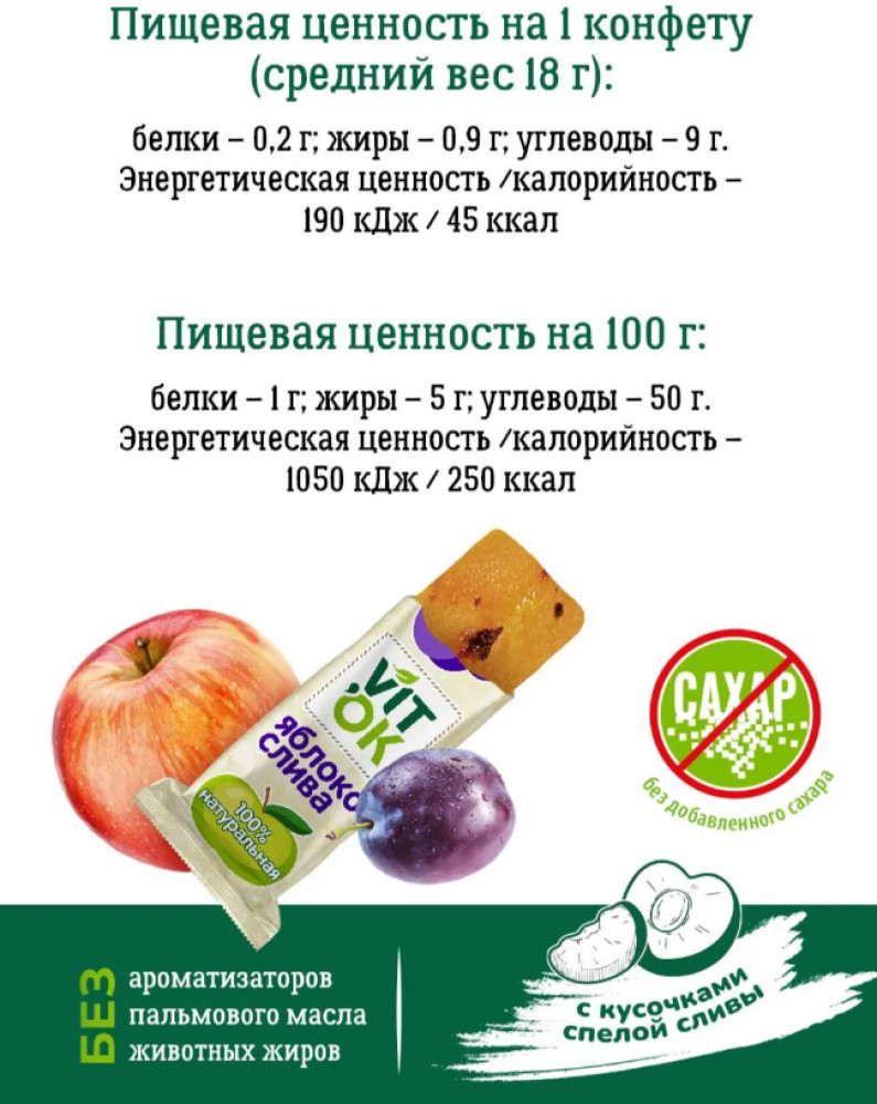 Vitok Конфеты-батончики фруктовые без сахара с яблочным пюре и кусочками сливы