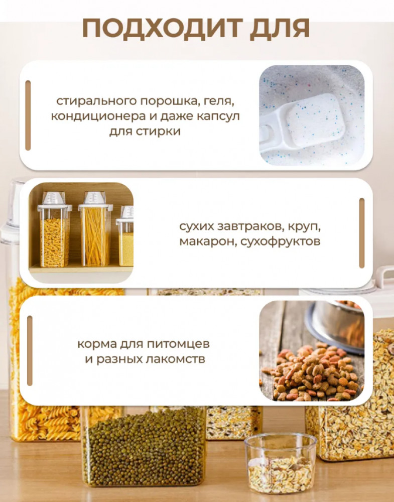 💳 Оплатить за товар можно при получении 🇰🇿 Есть бесплатная доставка по Казахстану от 1 дня 🎁 Копите бонусы с каждой покупки Этот универсальный контейнер станет незаменимым помощником в вашем доме. Он идеально подходит для хранения моющих и стиральных средств. Прозрачный пластиковый корпус позволяет видеть содержимое, что удобно при выборе продукта. Герметичный дизайн предотвращает попадание влаги и сохраняет свежесть геля, порошка или капсул. |